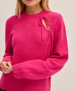 Not your average round-neck jumper. Alana is a soft, relaxed-fit pink knit jumper featuring a feminine asymmetric tie detail on the shoulder. In a vibrant fuchsia pink hue, she adds the perfect pop of colour to any outfit. Whether dressed up or down, Alana is the ideal way to brighten your wardrobe with effortless style.