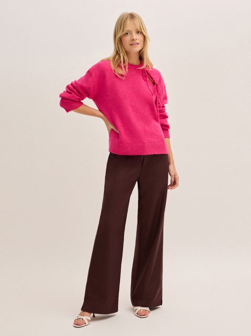 Not your average round-neck jumper. Alana is a soft, relaxed-fit pink knit jumper featuring a feminine asymmetric tie detail on the shoulder. In a vibrant fuchsia pink hue, she adds the perfect pop of colour to any outfit. Whether dressed up or down, Alana is the ideal way to brighten your wardrobe with effortless style.