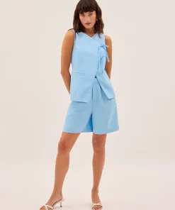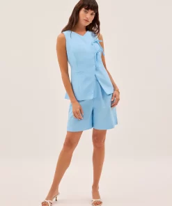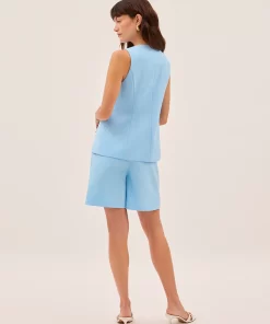 Our bestselling waistcoat, reimagined with a twist. The Lea Waistcoat features a sharp, tailored fit with jet pockets and a unique asymmetric tie front for a feminine finish. Cut in crisp blue tailoring fabric, it’s designed to be styled solo or layered – wear it with matching city shorts or your favourite denim for an effortless look.