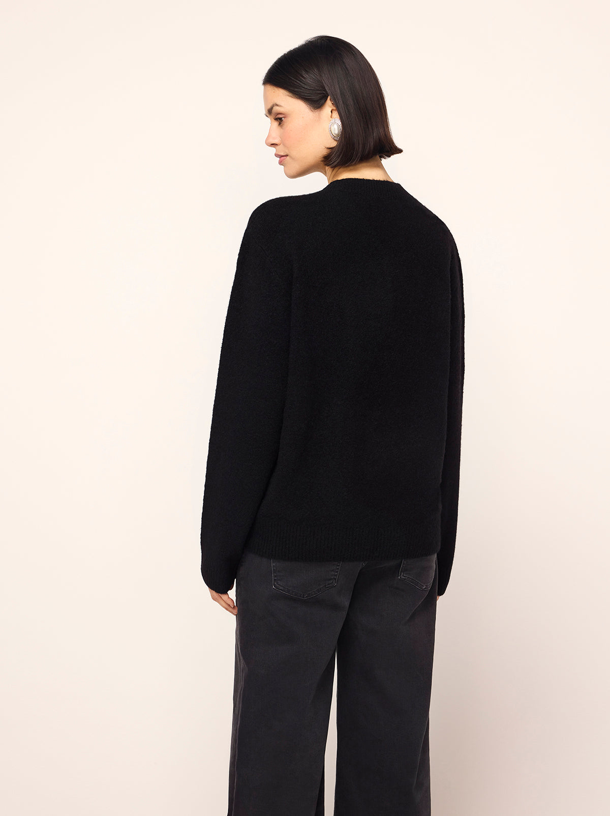 She’s the main character. Rowan is a chic black jumper with the ultimate kitsch appeal. Soft and cosy, her long sleeves and round neck will see you through season after season. Our in-house designed frosty rose motif is inspired by the magic of a standing ovation, with roses raining from theatre balconies.