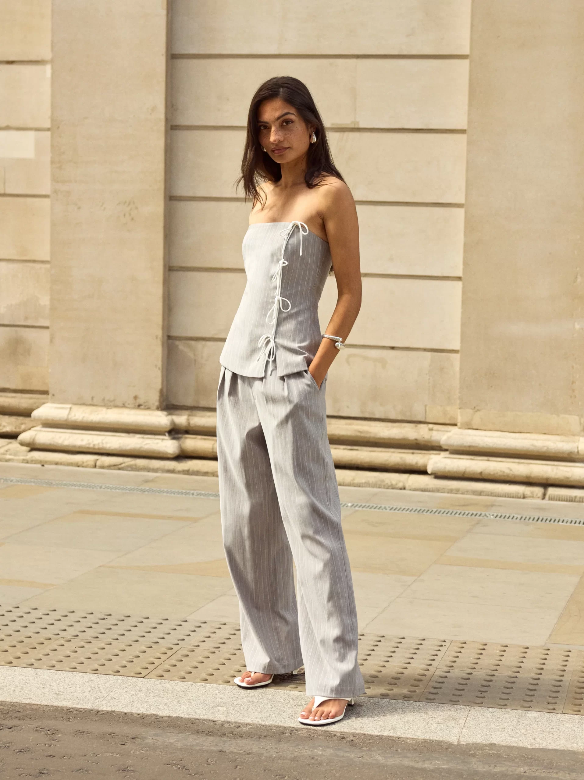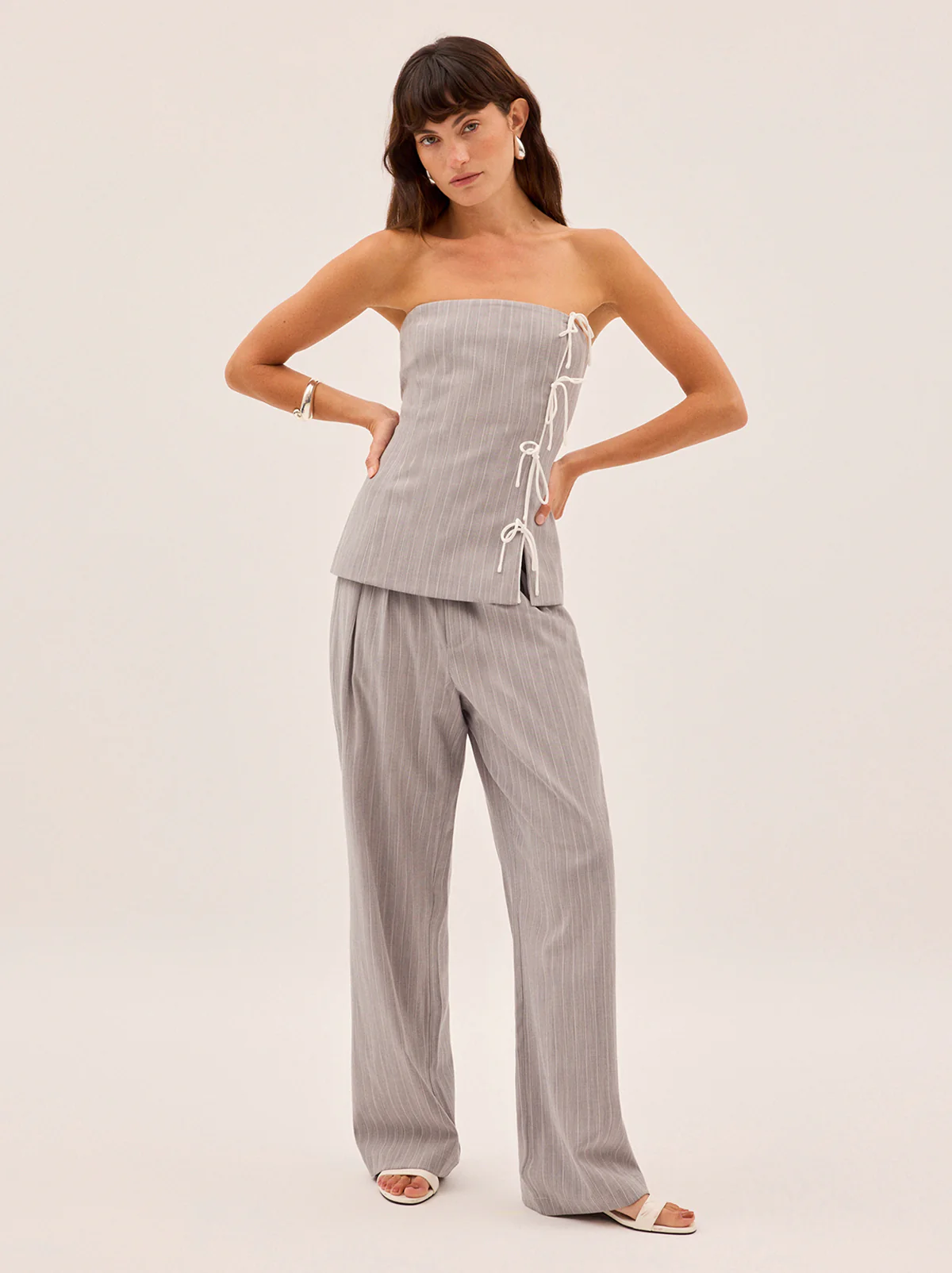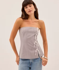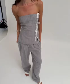 Be the first to review “Exclusive KITRI Katherine Grey Pinstripe Strapless Top – Limited Stock!” Cancel reply