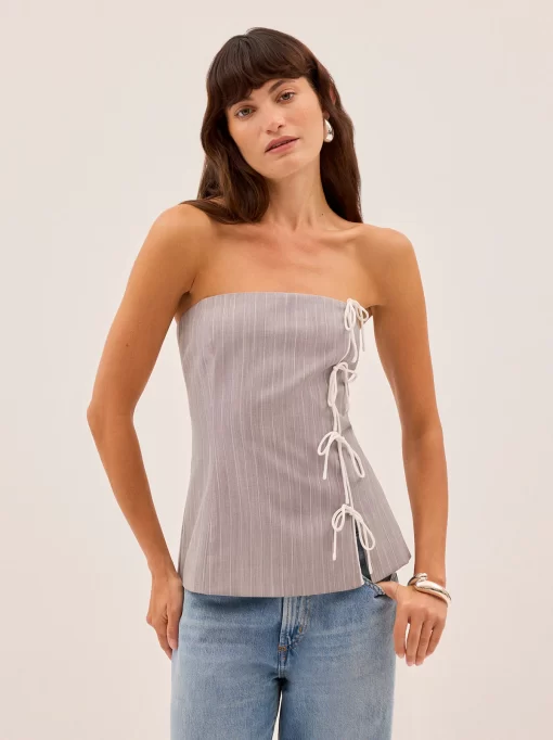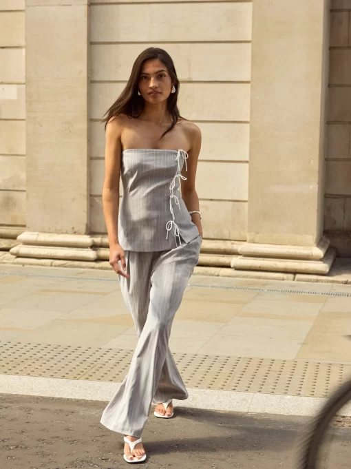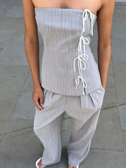 Be the first to review “Exclusive KITRI Katherine Grey Pinstripe Strapless Top – Limited Stock!” Cancel reply