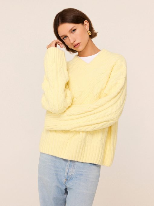 Flash Sale KITRI Everly Lemon Cable Knit V-Neck Jumper – Stylish & Comfortable