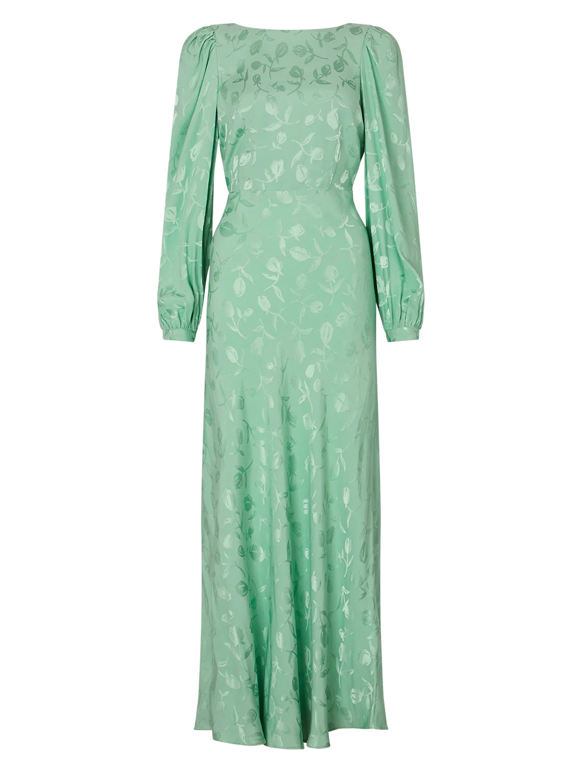 Wedding guest dressing, sorted. Slip into Megan in all her luxurious, jacquard wonder. Her deep-V back and wide neck reveal just enough skin to tantalise. Her unique jacquard fabrication offers just the right amount of texture and shimmer.
