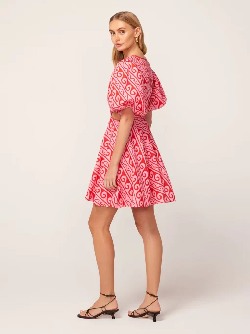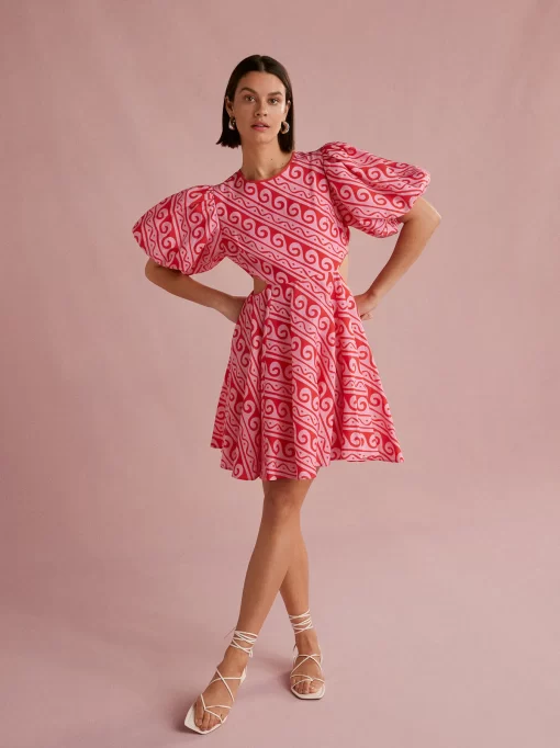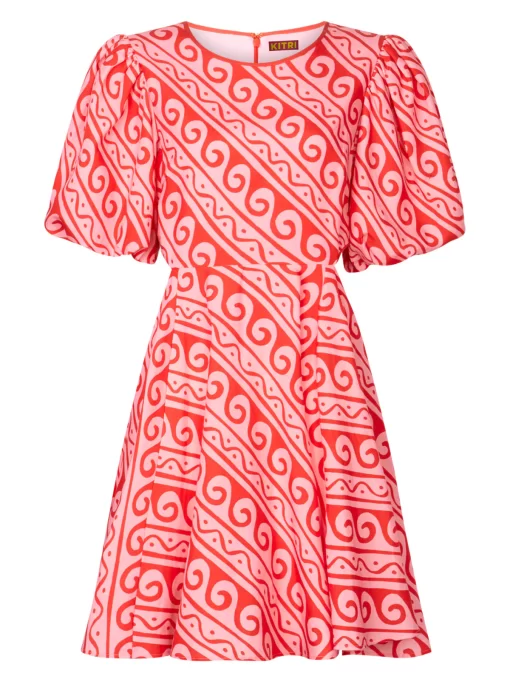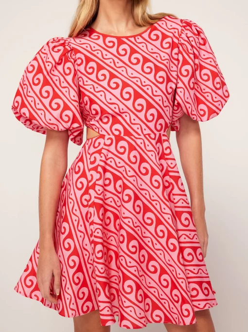Make mine a mini. Coco’s round neck and flirtatious cutouts are tempered by voluminous flared sleeves and half-circle full skirt (perfect for swishing). Her Pink Wave print is inspired by the art of ancient Greek ceramics in a #KITRIgirls favourite colour combination.