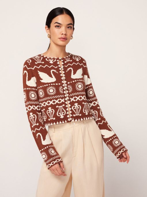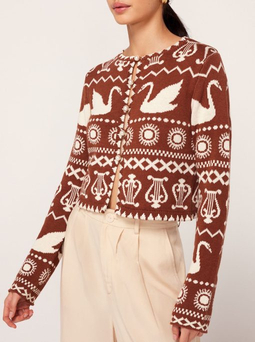 Limited Edition KITRI Carmel Brown Swan Fairisle Knit Cardigan – Ends Soon!