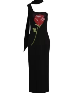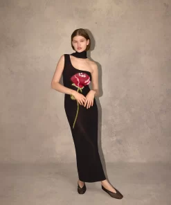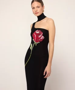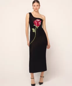 Limited Edition KITRI Chloe Black Rose One Shoulder Knit Dress – Last Chance!