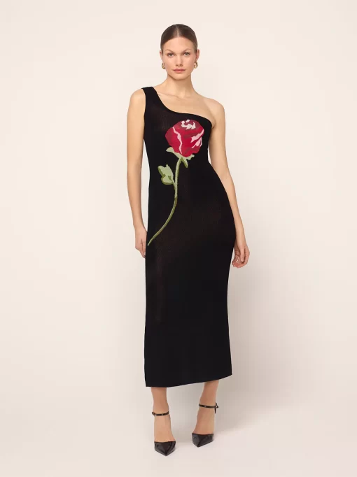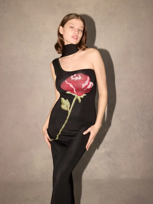 Limited Edition KITRI Chloe Black Rose One Shoulder Knit Dress – Last Chance!