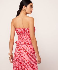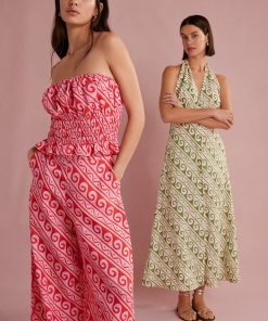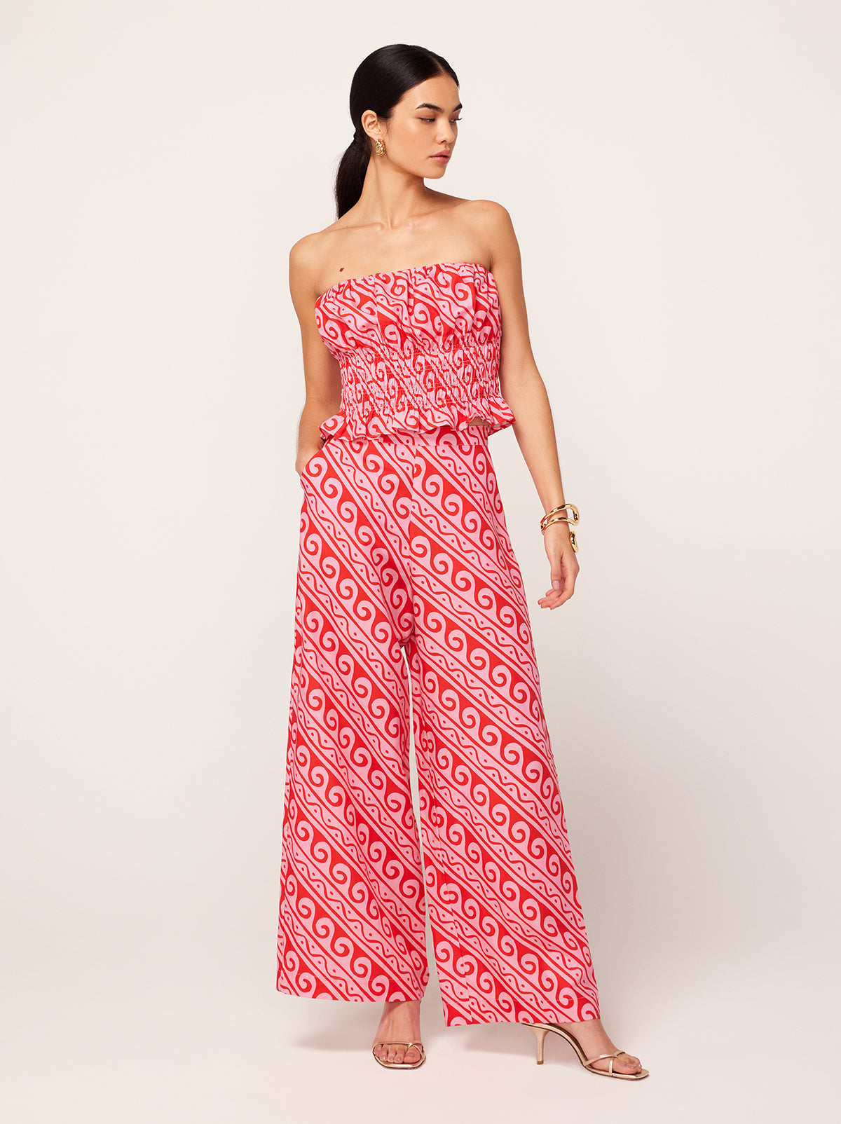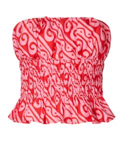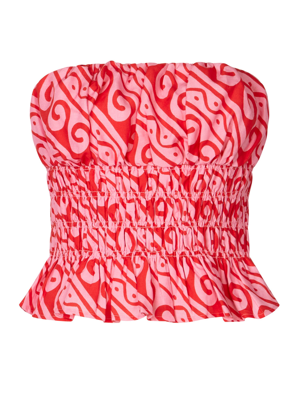 Ready in 5? Martha’s the ultimate pull-on-and-go strapless top this summer. Her shirred back panel keeps things comfortable with a ruched bust and gently peplumed hem for a playful silhouette. Pair with matching Cosima Pink Wave Print Wide Leg Trousers for the ultimate easy-breezy summer look.
