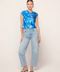 Premium Quality KITRI Monkia Blue Trailing Floral Print Top – Last Few Pieces!