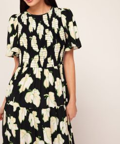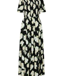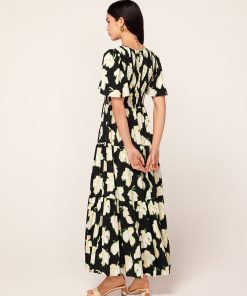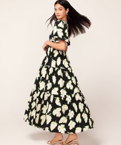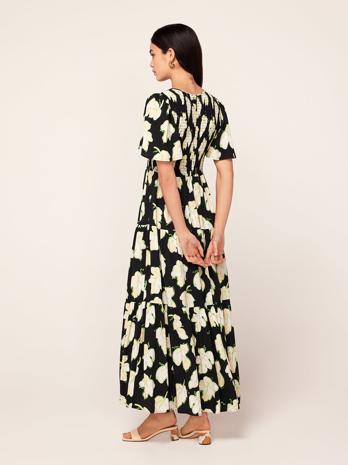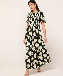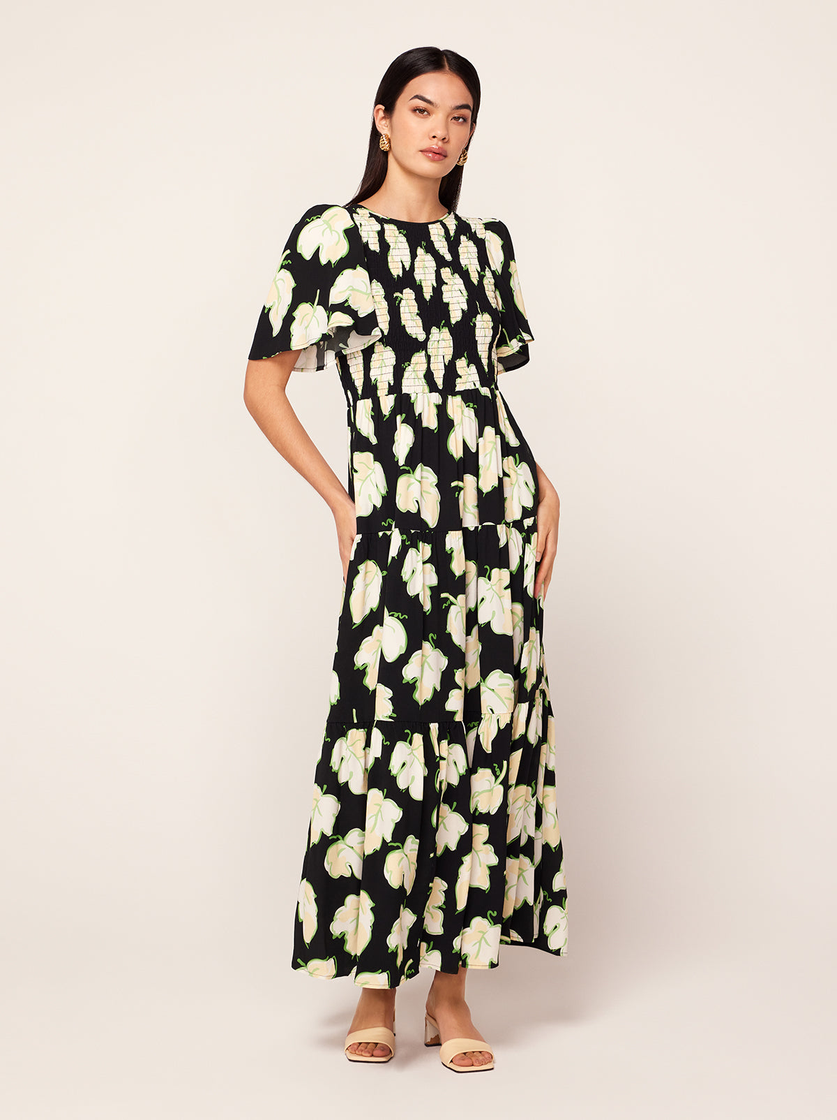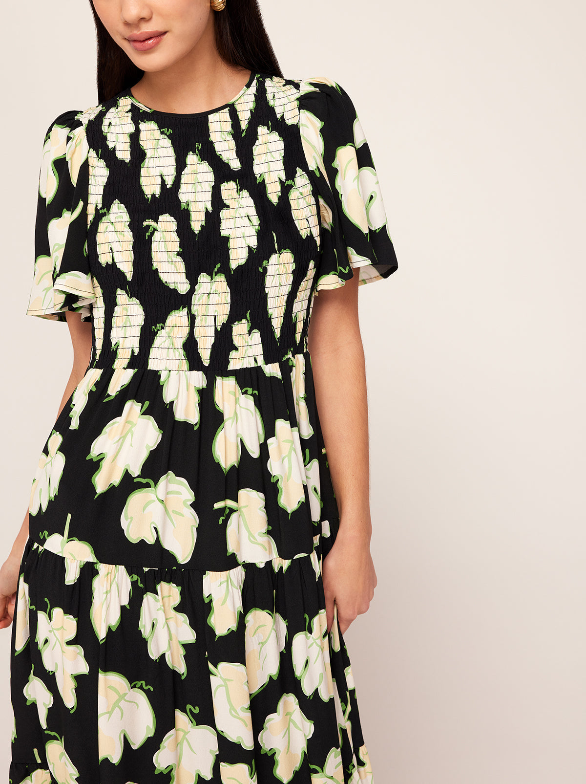 Selling Fast KITRI Bridget Black Vine Leaf Shirred Maxi Dress – Going Fast!