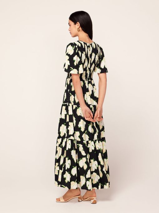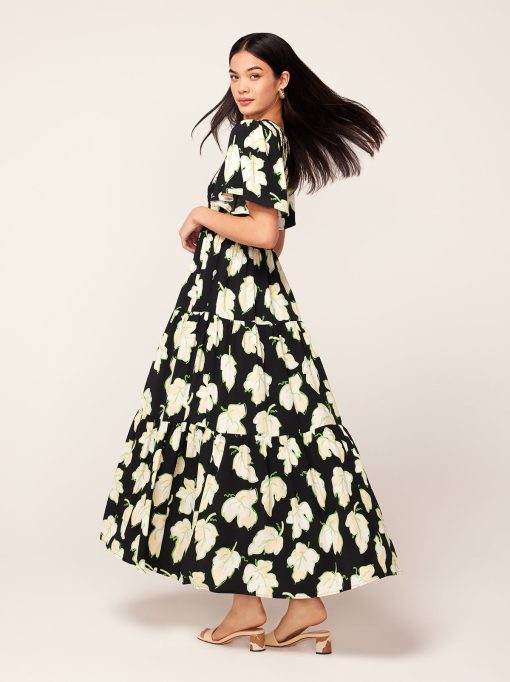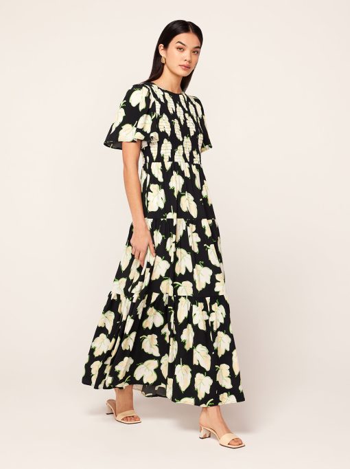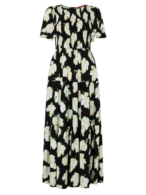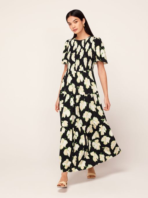 Selling Fast KITRI Bridget Black Vine Leaf Shirred Maxi Dress – Going Fast!