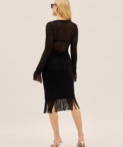 A statement skirt with everyday ease. The Marielle Skirt is crafted from a lightweight, ribbed knit that hugs the body without clinging. Designed with a flattering fitted silhouette and finished with dramatic fringing at the hem, it’s equal parts bold and wearable. The elasticated waistband keeps things comfortable, while the opaque knit means no layering required.