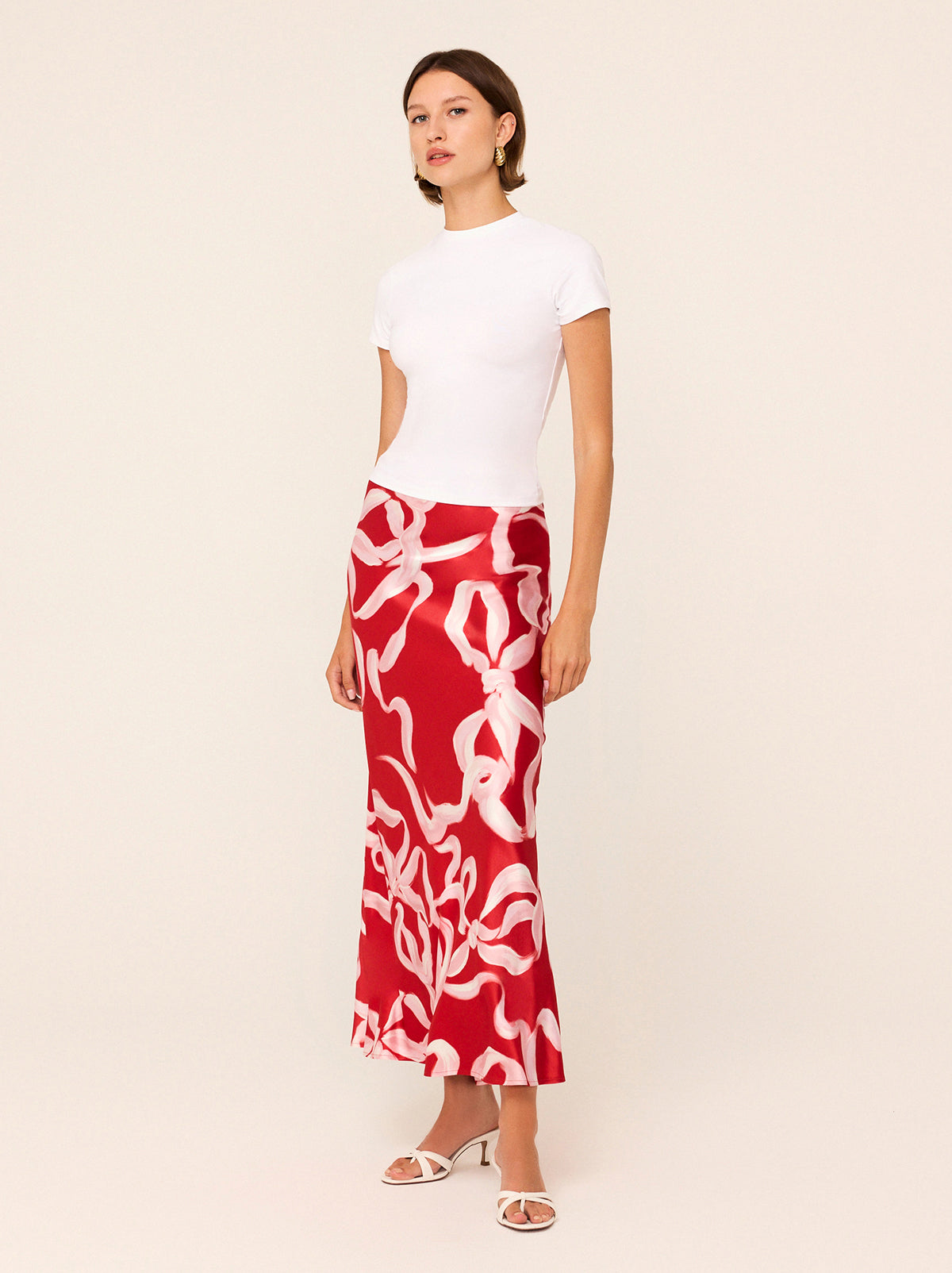 Trending Now KITRI Layla Red Ribbon Print Maxi Skirt – Last Chance!